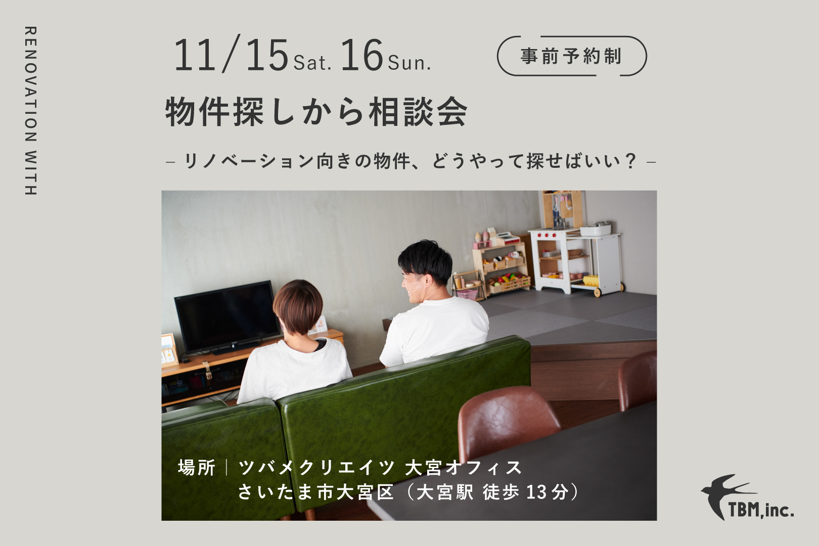 この相談会では、物件選びの基準や注意点、エリアの選び方などを、ツバメクリエイツのリノベーション設計士が丁寧にアドバイス。